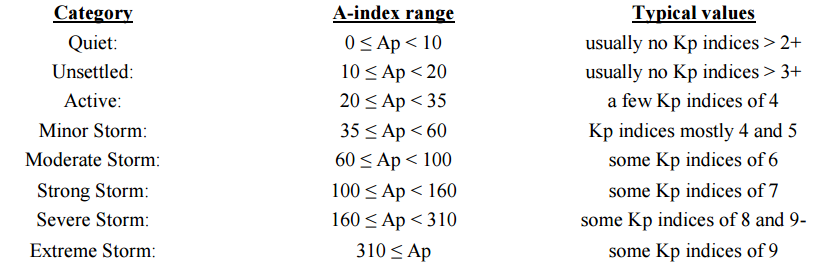 Tabelle 1: Kategorisierung des planetaren A- und K-Index.