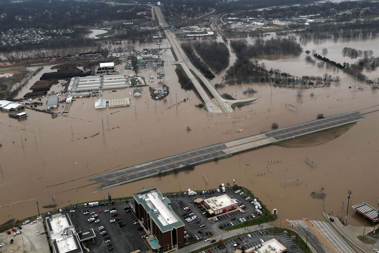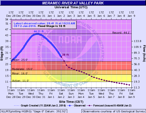 That has not been the case for places south of St. Louis. The Mississippi River reached levels never before seen in the town of Cape Girardeau, Missouri on New Year’s Day, rising to 48.86 feet, breaking the record set in 1993 during one