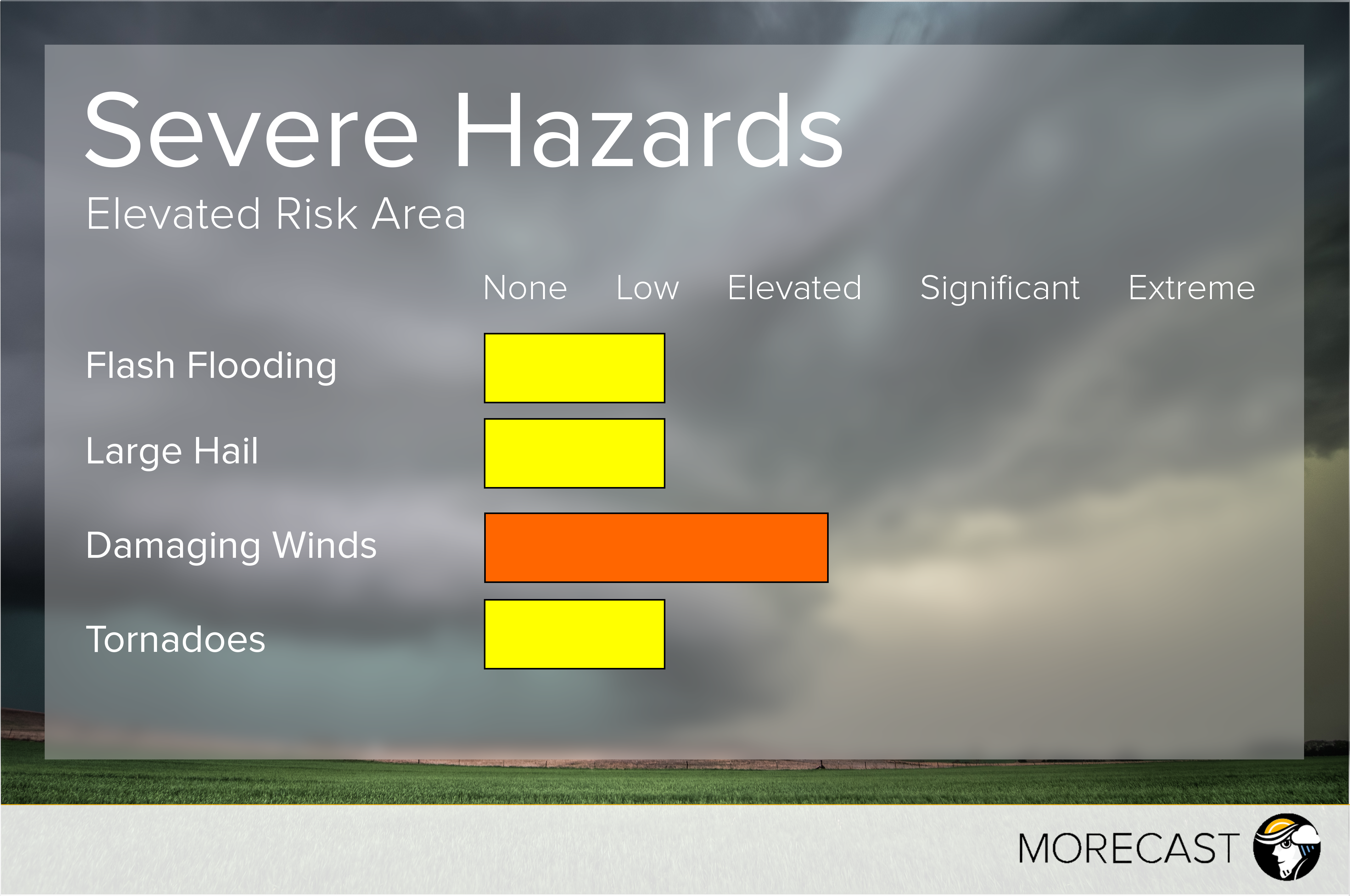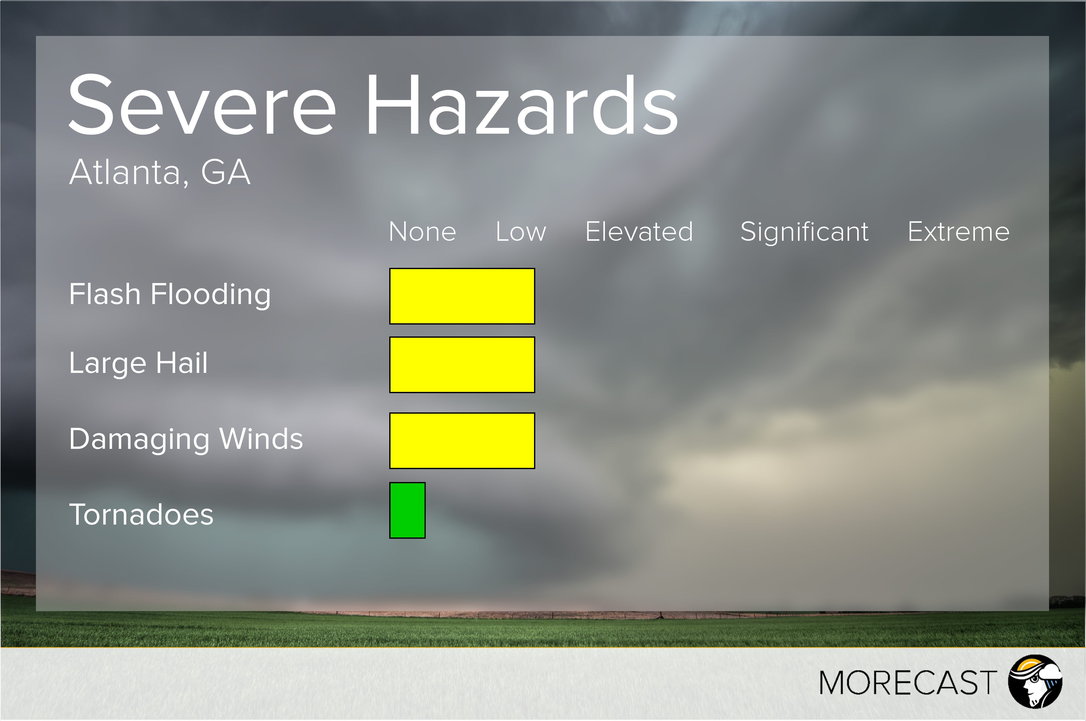 A weakened band of thunderstorms draped through the Tennessee River Valley down to the Gulf Coast will continue its progression eastward this afternoon bringing the chance for strong winds and small hail to the Southeast and Mid-Atlantic.As a humid airmass currently in place over the Southeast continues to destabilize through the afternoon, numerous summer-like popcorn thunderstorms will likely develop. The strongest of these storms may produce gusty winds and widely isolated small hail. These storms will fuel into a weak band of thunderstorms draped from the Ohio Valley back to the Mississippi River through the afternoon. As this line intensifies on the east side of the Appalachians through the afternoon, strong winds will become more likely. Below are some of the risks for locations in the threat area today: