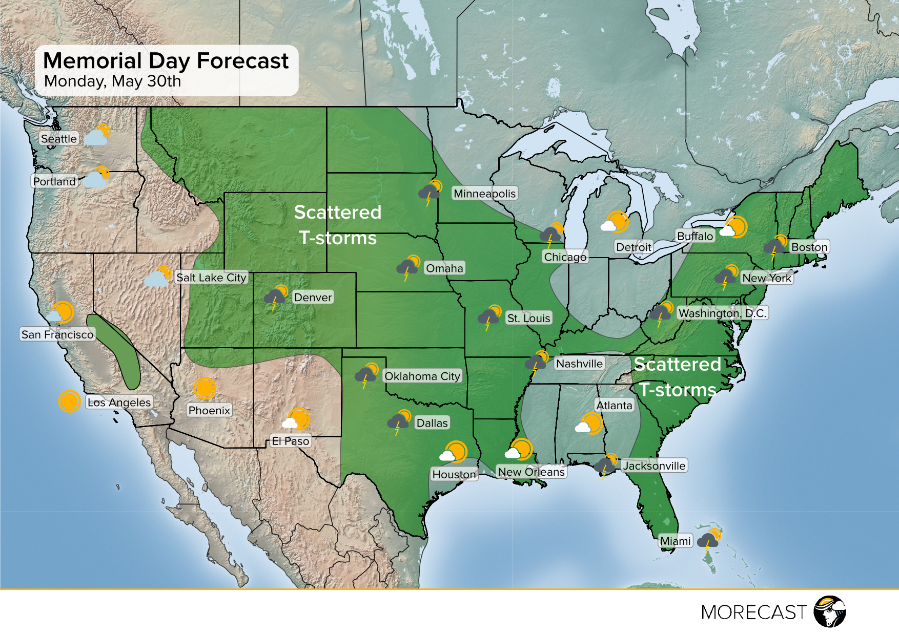 Along with honoring the men and women who sacrificed their lives fighting for the country, Memorial Day Weekend is also viewed as the unofficial start to summer. What cities will have the best Memorial Day forecast? MORECAST has a look at what to expect from Mother Nature for any outdoor activities that you may have planned.