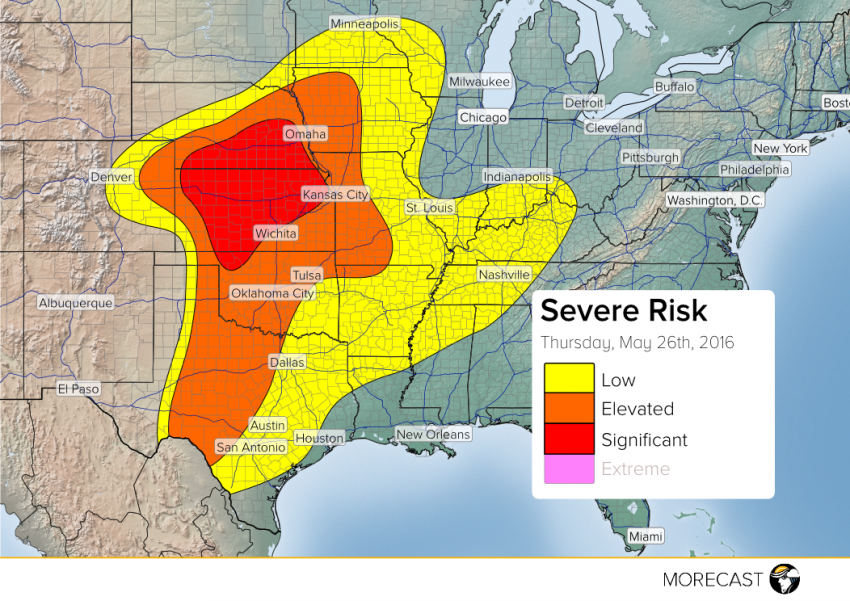 The past few days have been very active with baseball sized hail to strong tornadoes through Central U.S. There will be a decrease in the amount of wide spread thunderstorms outbreaks today but that does not mean severe weather will not be present.