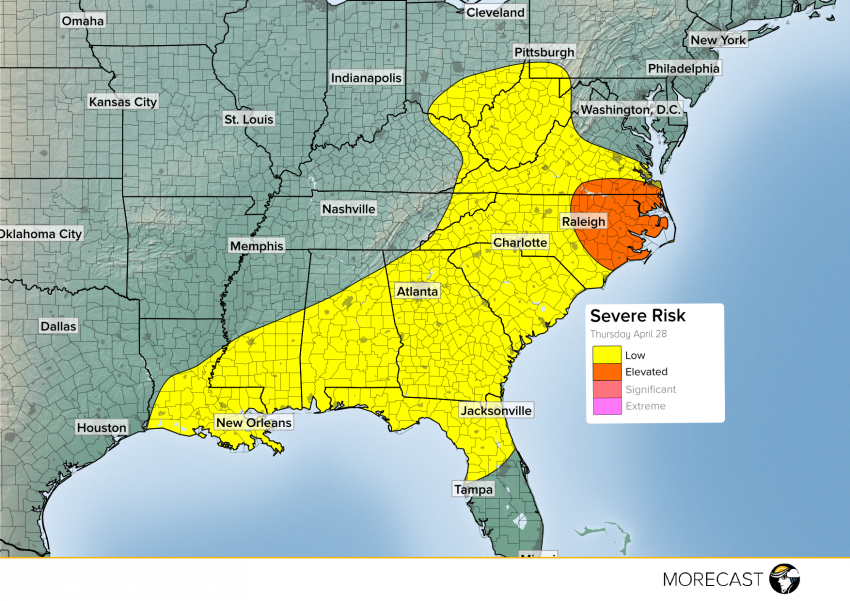 There is a risk for strong to severe thunderstorms across North Carolina and parts of Virginia. Storms will develop this afternoon with the help of a system moving toward the southeast from the west.
